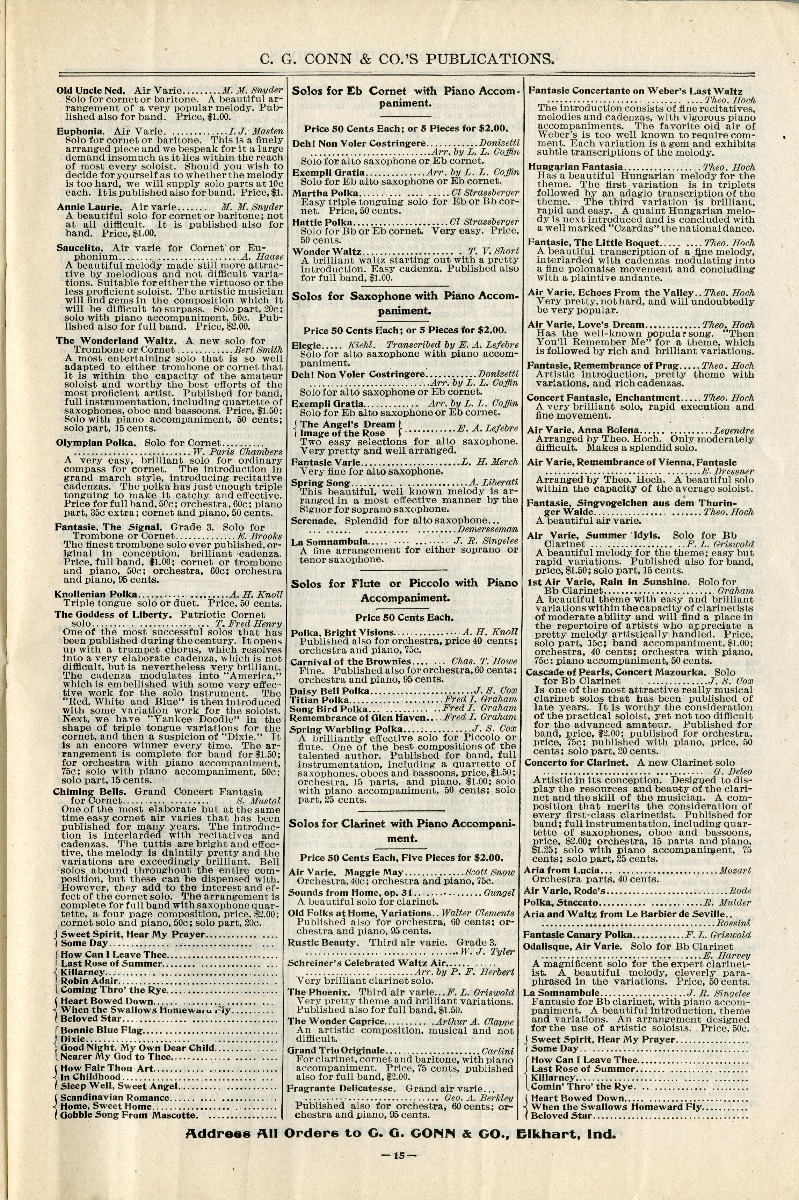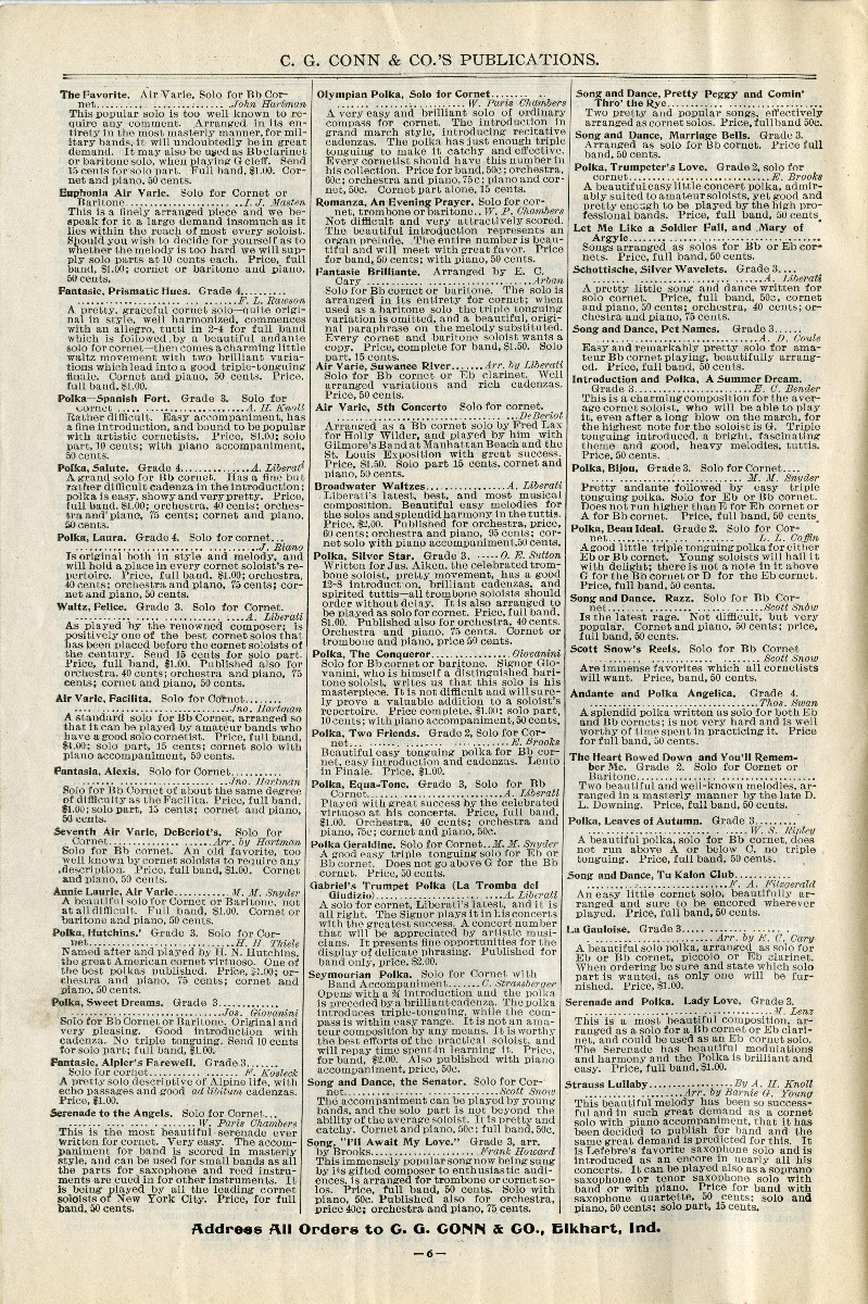 SUMMARY: This 1902 catalog collects all music publications to date by C. G. Conn.