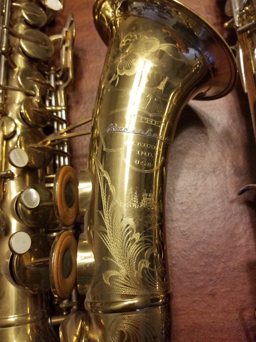 That was, in fact a long list of updates and features. It may seem long winded, but it is the starting point for the de-evolution of the instrument. At the point Buescher was ready to introduce their new “Super ‘400’ Saxophone” the United States was dragged into a little conflict known as World War II. Again, not to get too far into the history of world events but, during WWII and the subsequent Korean War, Buescher’s plant converted to manufacturing aircraft parts for the military.