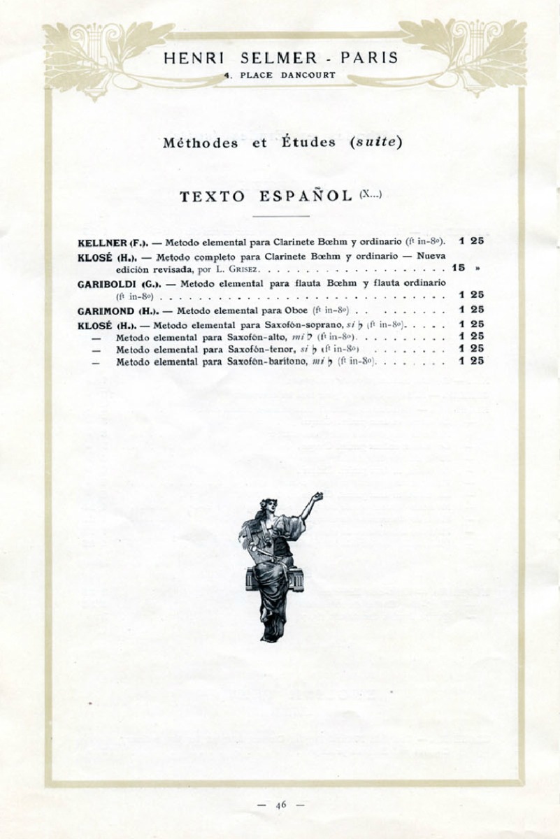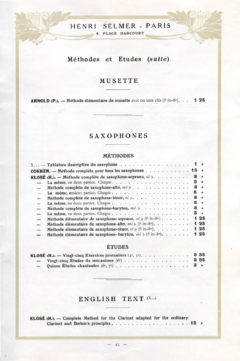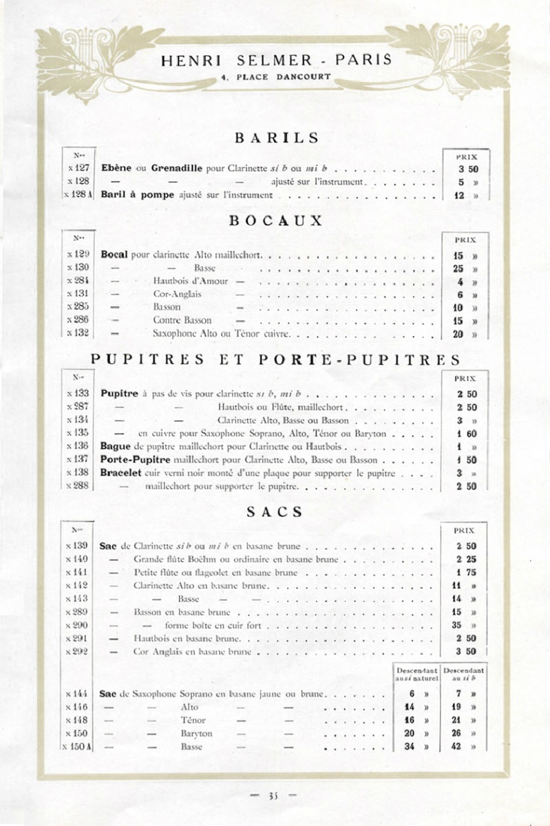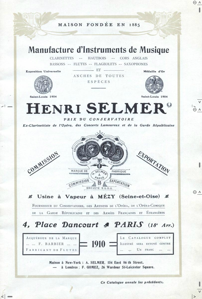 CATALOG NO.: SLC1910 Selmer Paris Catalogue