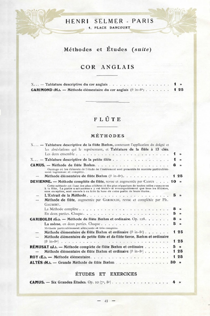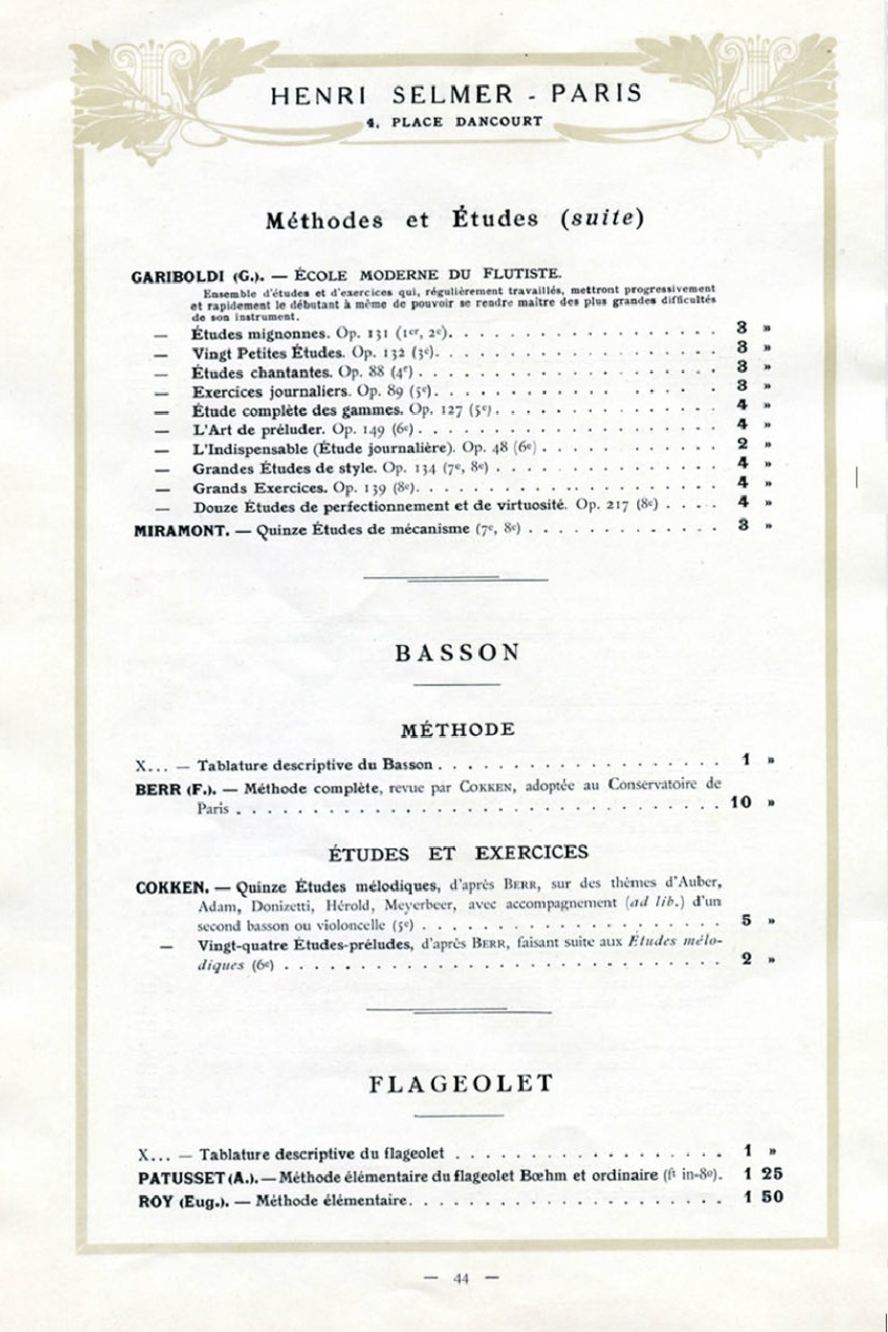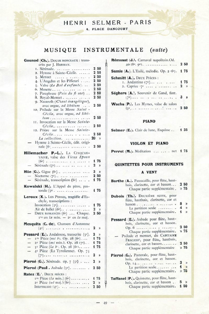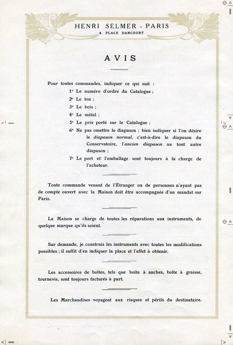 CATALOG NO.: SLC1910 Selmer Paris Catalogue